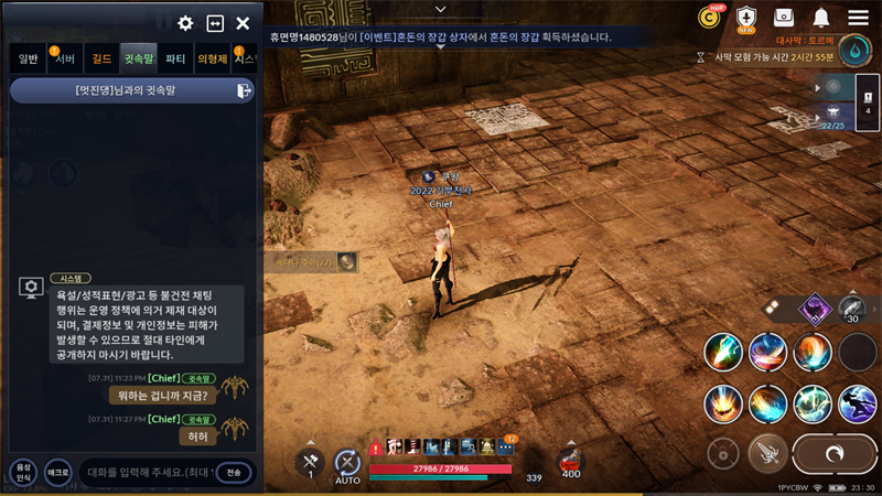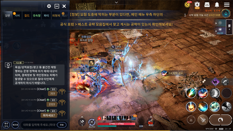 아실만한 투력 분이... 귓말 대답이라도 하시던지...