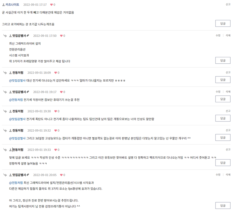 그래서 댓글로 "최신 그래픽드라이버 설치/전원관리옵션/시스템 시각효과" 3가지는 확실히 체감될정도로