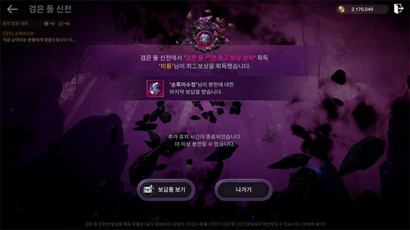 검은돌 신전 봉헌 마지막 보답으로 받는건 처음이네요???