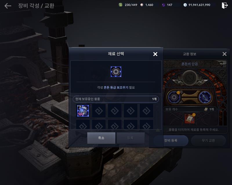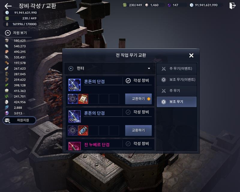 재료다있고 주무기는교환됬는데 보조무기 안되네요 이벤트도아니고 클체펄주고했는데