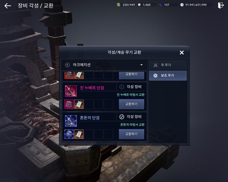 악메 마법서 <-> 악션 단검 각성 계승 변경으로 헌터 착용가능해집니다.