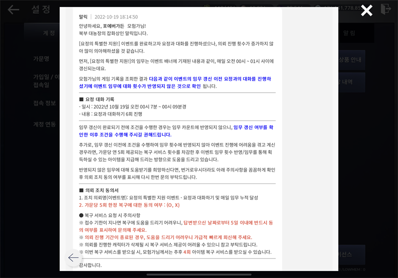 요정 대화하기 이벤트 3회 날렸다 망했다