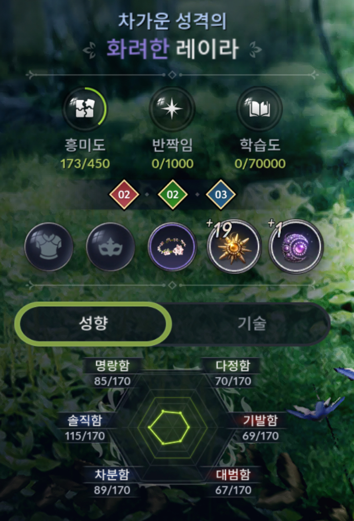 스샷 스탯 상태에서 양배추에서 요정 날개돋이 후 성격 바뀜