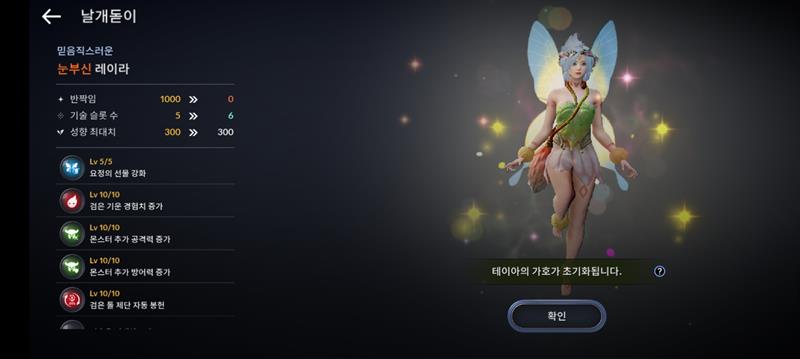 날개돋이 한번할때마다 성향치 맥스 10씩 올로가네요