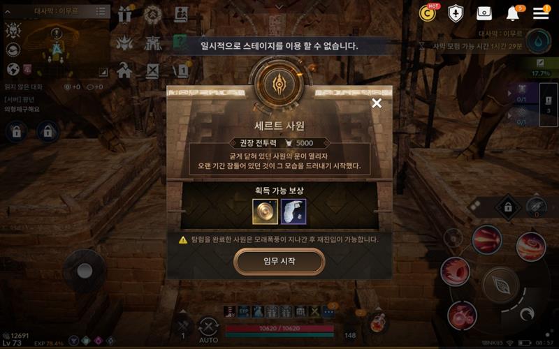 대사막을 진행해야지 뭐 룬이나 이런거 장착 가능하다던데 진행이 안되서 너무 슬픕니다....ㅠㅠ
