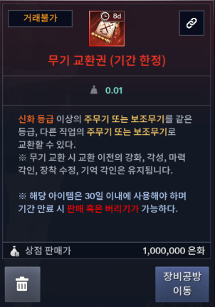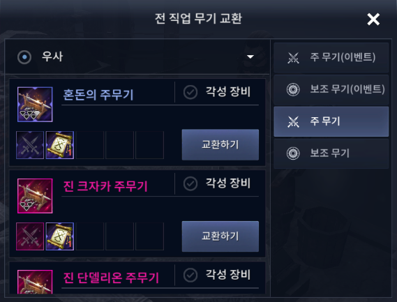 부캐 중 하나 설화->우사로 바꾸려고 저거 사용하려는데