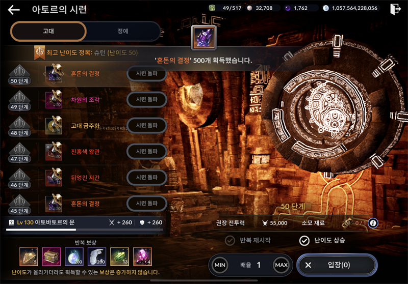 고대시련 50단계 끝판왕 면상!!! 드디어 봤다 ㅎㅎ