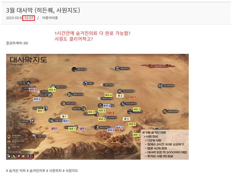 아래는 이번달 사막 숨겨진 의뢰와 사원지도 인데요.