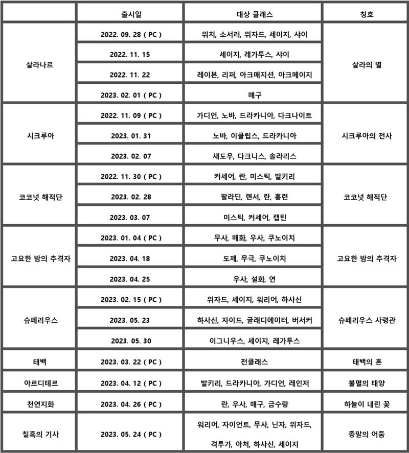 컨셉화 의상 출시일 정리 ( 23. 05. 30 기준 )
