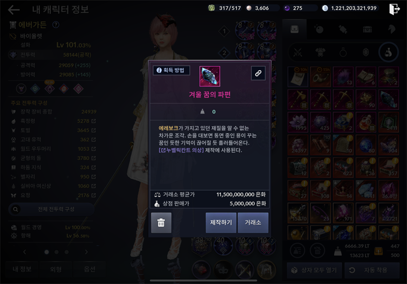 에레보크로 누벨릭칸트 옷 의상 재료 (겨울꿈의 파편) 얻을 수 있습니다 (못받으신분도 있다고 합니다, 기여도에 따라서)