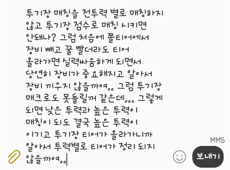 그러니 사람들은 투력 올려야하는 동기부여도 되고 금손들은 투력 200이상 차이도 잡더라구요...
