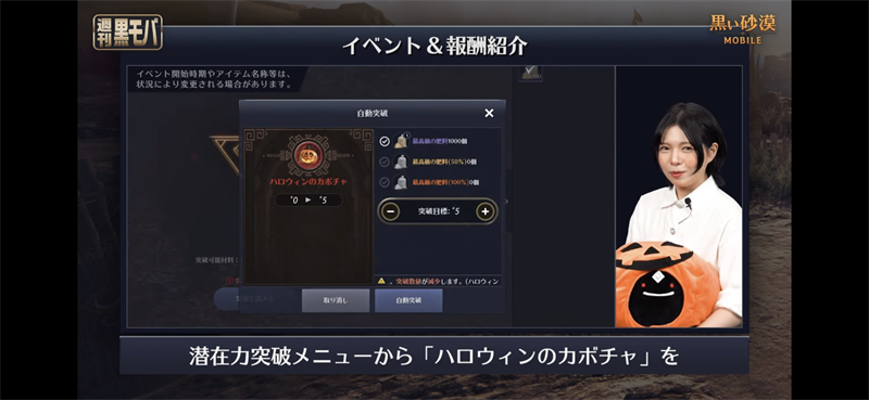강화절차에 관해서는 잠재력 돌파 메뉴에서 ’할로윈 호박‘을 화면처럼 강화할 수 있습니다♪