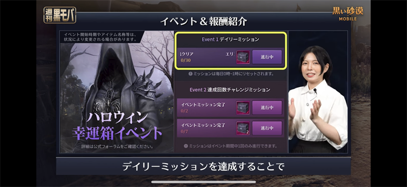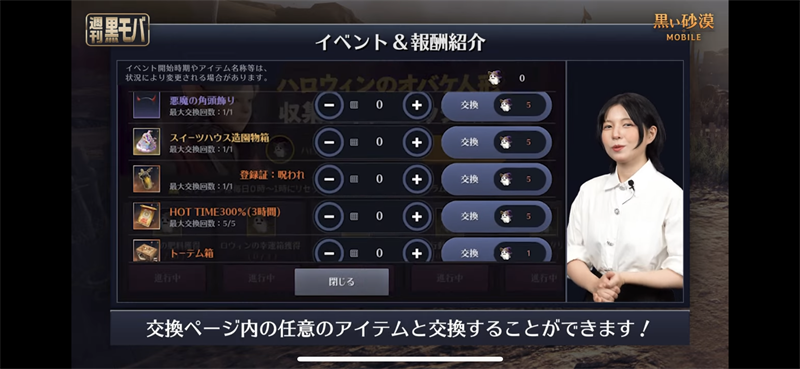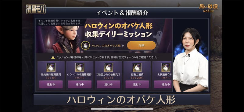 이쪽의 각 데일리미션을 달성해 보수를 획득하고 교환 페이지 내의 선택 아이템과 교환할 수 있습니다! 할로윈 한정 아이템과 모험을 하는 데에 있어서 필요한 아이템도 획득할 수 있습니다! 매일 로그인 해 미션을 진행합시다♪