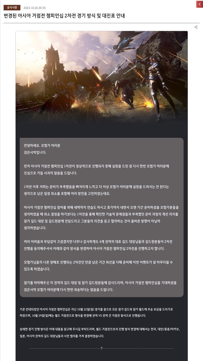 변경된 아시아 거점전 챔피언십 2차전 경기 방식 및 대진표 안내