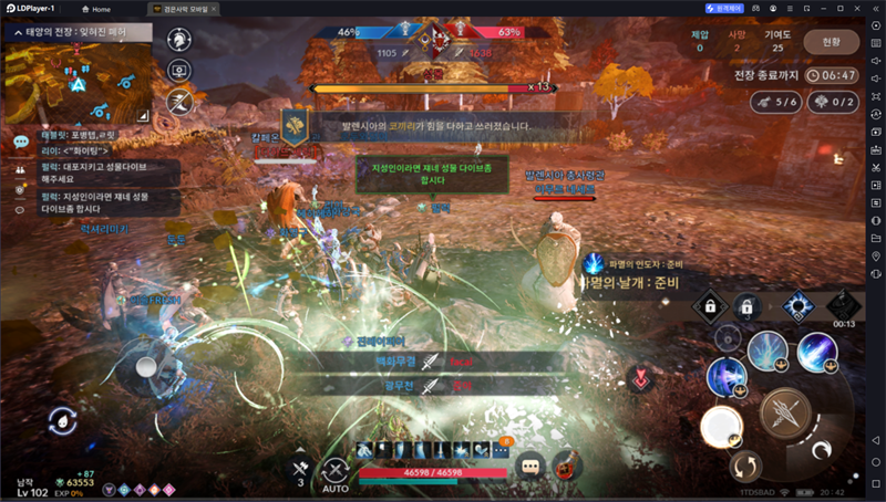 한창 게임 중반에 한 80%이상이 여기 가운데서 패싸움 하고 있어요