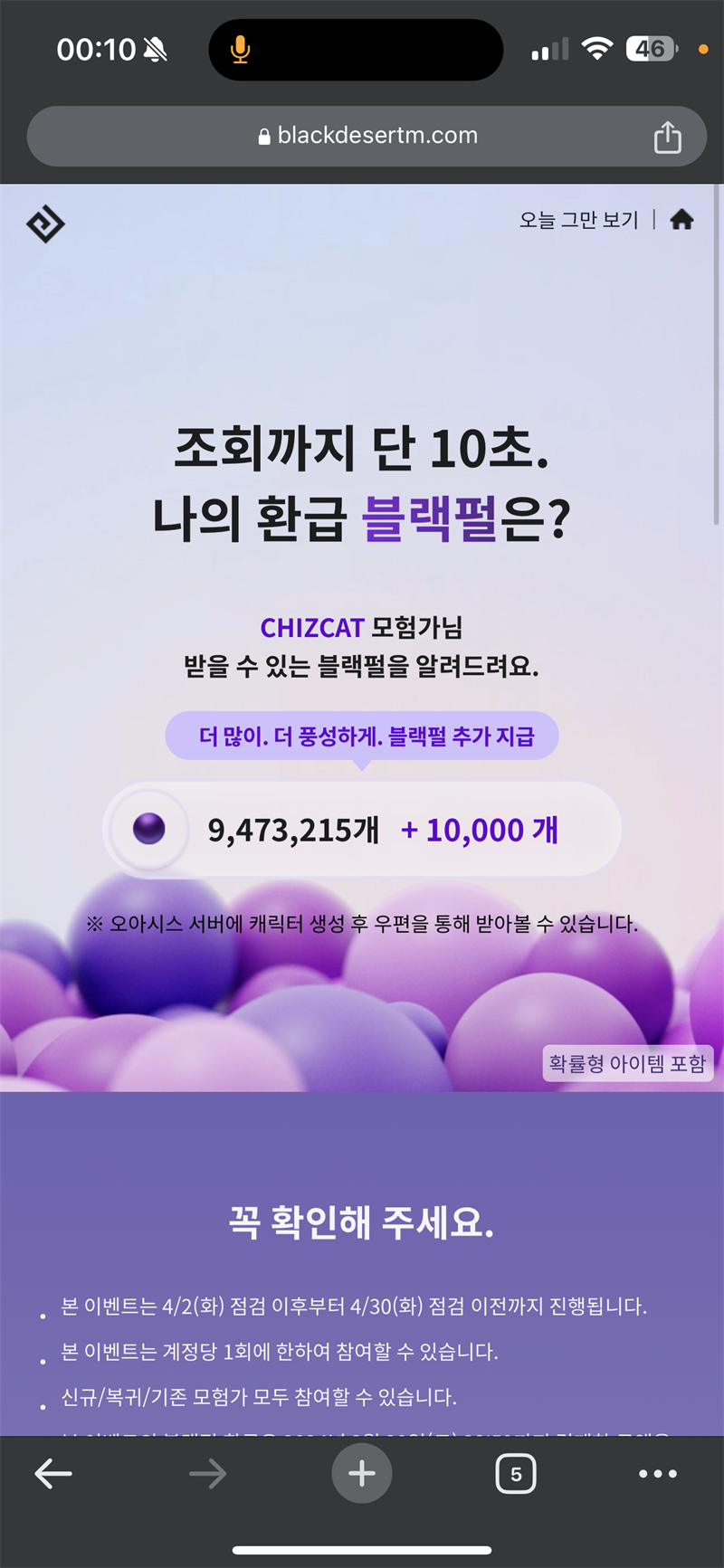 블랙펄 환급 조회 해봤는데 437,350펄 나오네 ㄷㄷㄷㄷㄷ