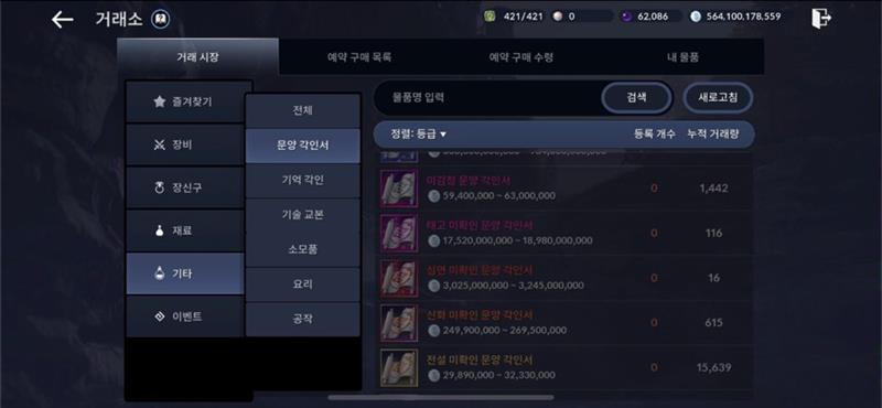 무려 1만4천건의 전설 각인서가 거래되었습니다.