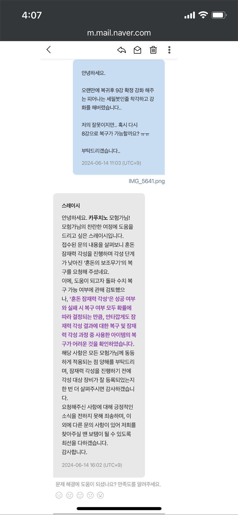 근데 본인잘못인데 왜 그걸 문의를하시는지... ㅋㅋㅋ잘가세영