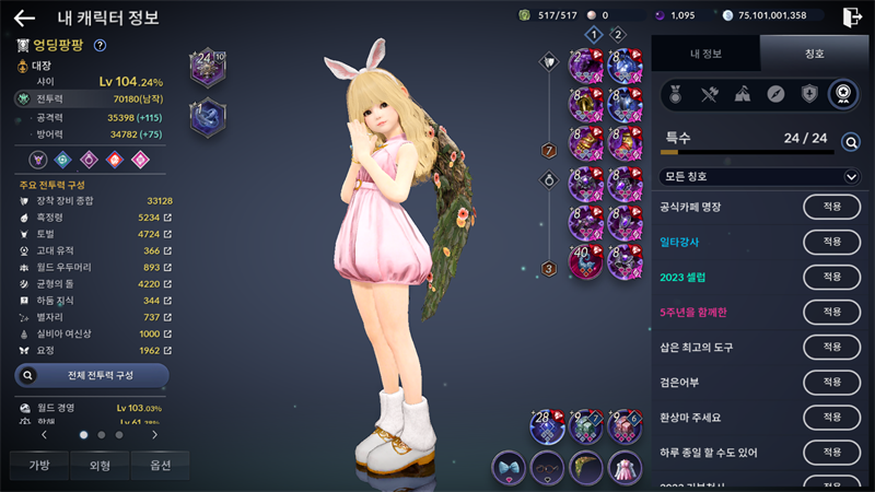 패치 덕분에 전투력이 7만으로 껑충!!