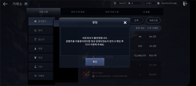네트워크가 불안정한 현상으로 인해 이용에 불편을 드려 죄송합니다.