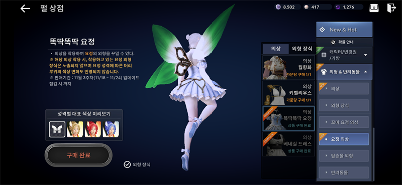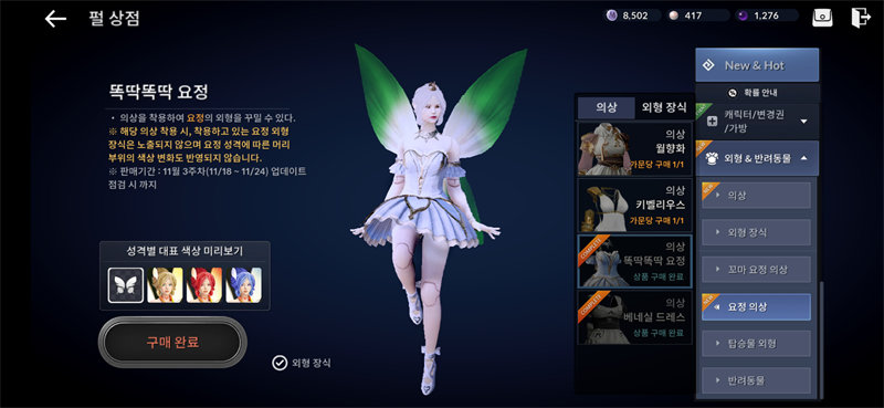 외형은 날개 색상만 바뀌고 나머지는 고정이네요ㅎ
