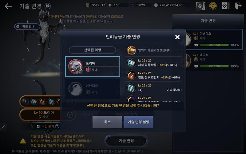 특수기술 변경하려고 하는데 5세대 집어넣고 돌리면 계속