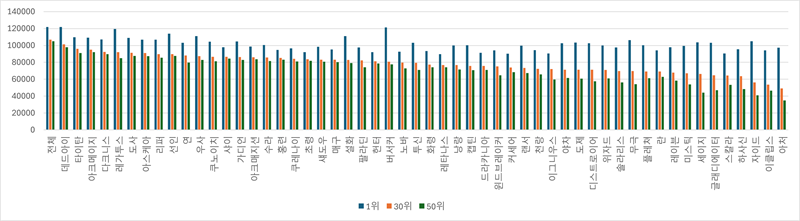 #30 | 미스틱 | 99549 | 67055 | 53867 |