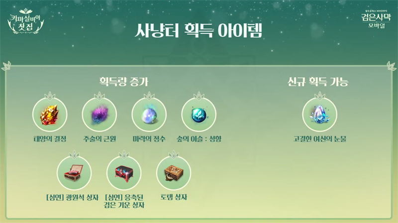 사냥터와 콘텐츠 진행 시 아이템 획득 보상이 굉장히 많아질 예정