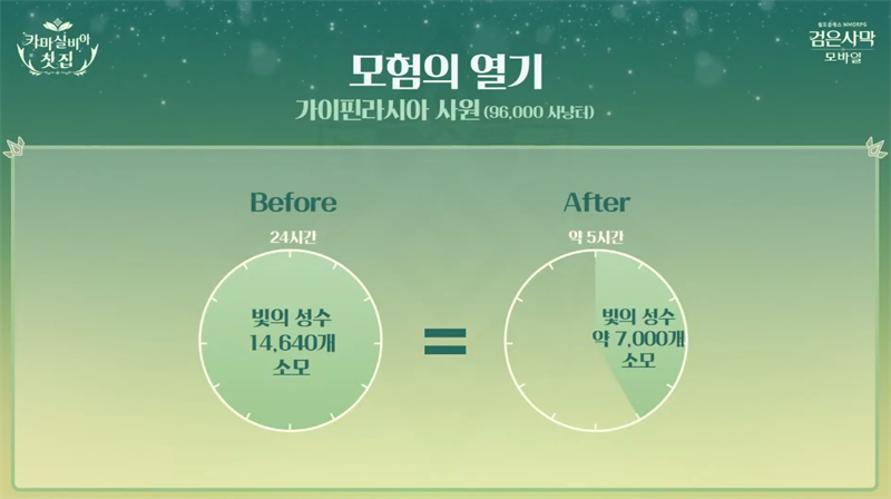 대략 4~6시간 소요 = 기존 24시간 사냥하는것과 동일한 보상