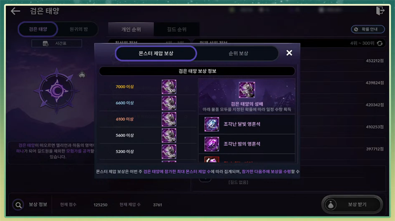 원귀/검태 흔적 보상이 아닌 제압 몬스터 순위로 보상 변경