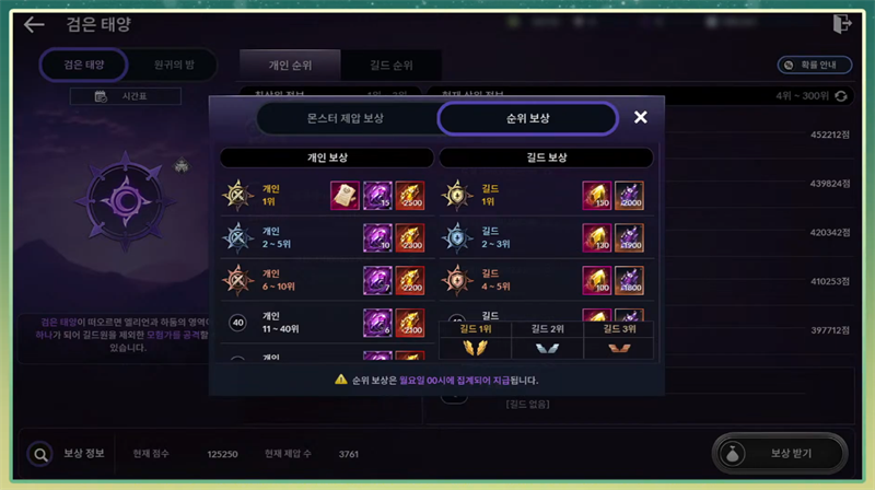 만약 여러번 검은태양을 참여했다면 그 중 최고 순위로 집계