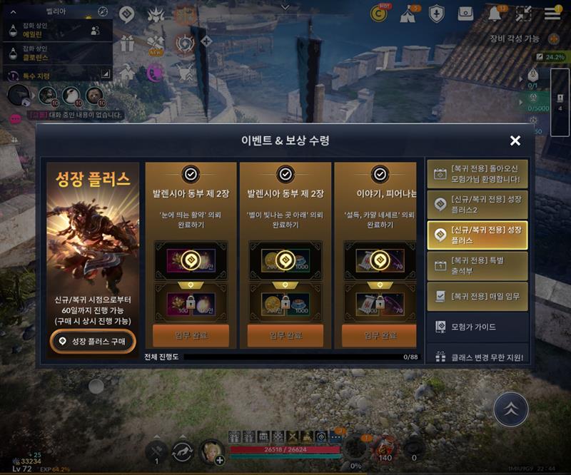 복귀유저인데 성장플러스가 안되요
