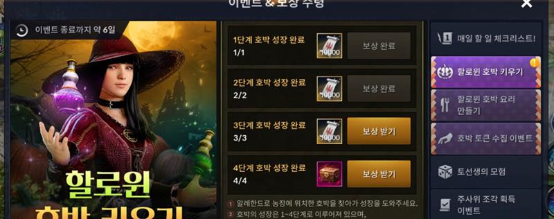 캐릭당 호박 미션 받으셔서 끝내세요.