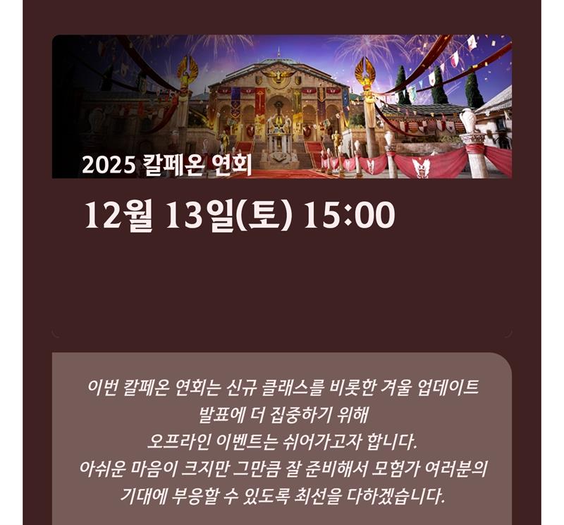 하이델 연회를 피씨는 대전에서 오프라인도 진행했고 모바일은 온라인만 진행해서 칼페온은 반대로 모바일만 오프라인 진행하는 느낌이드는데