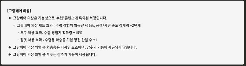 신규 기능성 의상 출시 예정 - 그랑베어 ( 수렵복 )