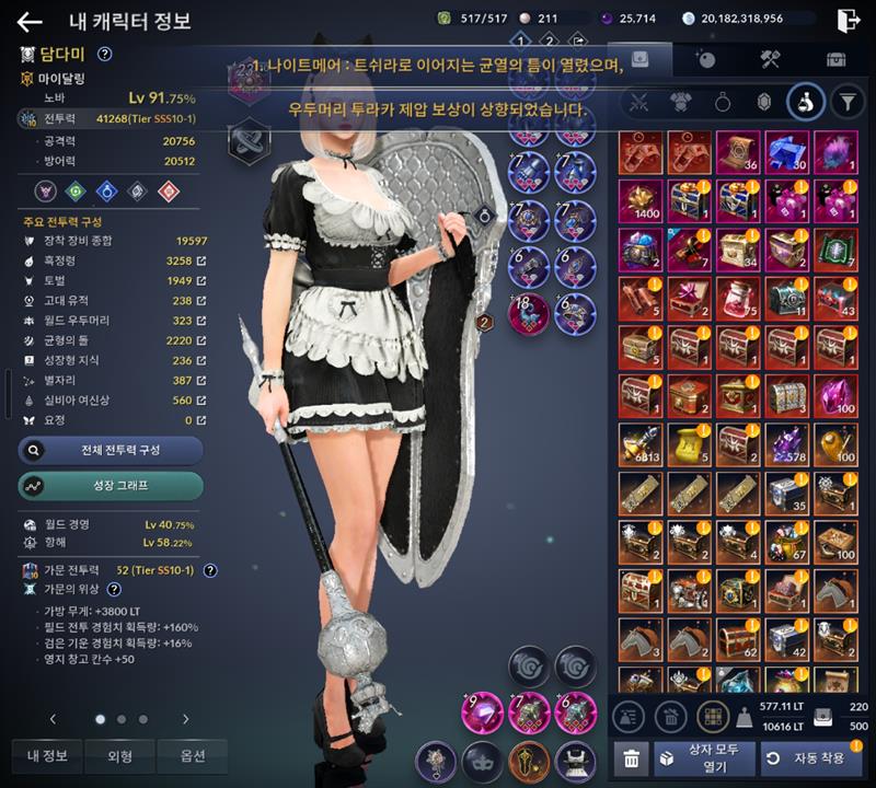 - 요정 공략 보며 올릴 것 (시간 단축 + 오래 걸림) - 월드 경영도 공략 보고 빨리 올리면 좋긴 함... 이득 볼 거면 파견 대신 수동 - 필드 사냥 + 영역 조사로 지식 레벨 올리기 - 마력 각인 - 토벌&별자리 최대한 돌아서 블랙펄 수급한 후... 좋은 행상이나 핫딜 때 구매 - 나이트메어 참여 (보상 좋음) - 아즈낙 전장 + 태양의 전장 + 죽은 신의 무덤 참여 - 검은 돌 봉헌은 시련권 (아토르 만렙 찍을 때까지) - 정예 시련 최대한 밀기