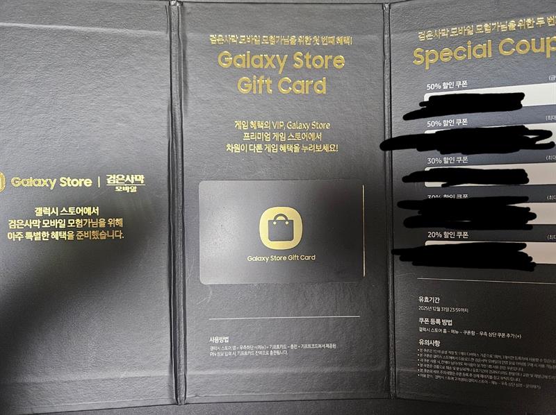 각종 할인 쿠폰이랑 가운데 카드에 5만원권이 있었습니다.