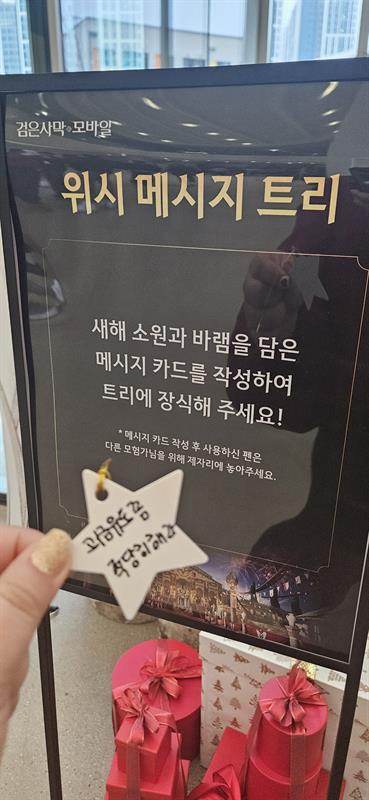 익명으로 소원을 남길 수 있는 메모지와 트리였는데, 진짜 진심 가득 담은 제 소원이니 제발 이루어졌으면 좋겠습니다. 아주 잘 보이라고 정중앙에 매달고 왔거든요.