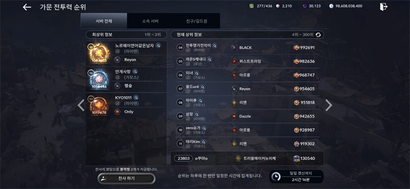 가문전투력에 비례한 가문의 위상 개편부탁드립니다