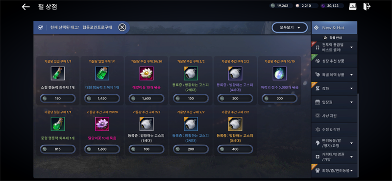 현재 펄상점 마일리지&협동포인트 품목들이 뭐 4년전에 쓸법한 아이템들로 구성이 되어있습니다.