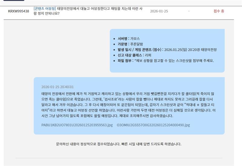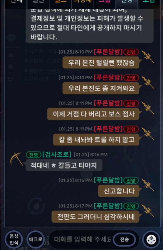 태전에서 이딴 저급 어뷰징을 하는데 (심지어 다른 서버라 적대도 아님)