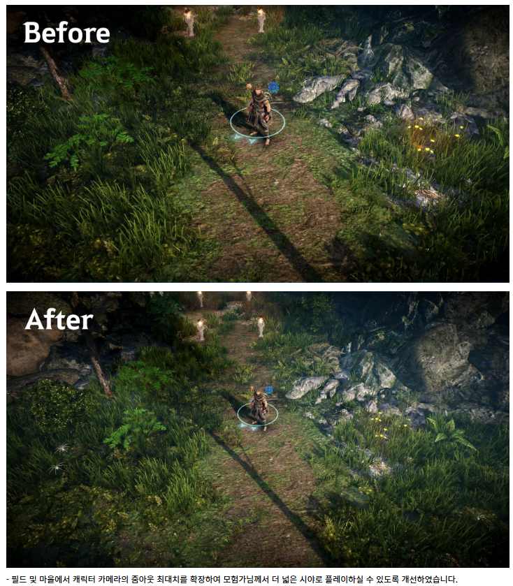 이게 2021년 시야 확장 패치했던건데 3월달에 이렇게 카메라 줌아웃 시야 확장인줄 알았는데