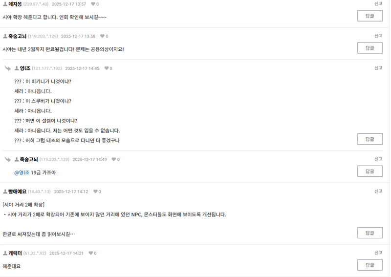 내가 카메라 시야확장 안해준다고 징징대니까 댓글에 이렇게 말한놈들 나와봐라....