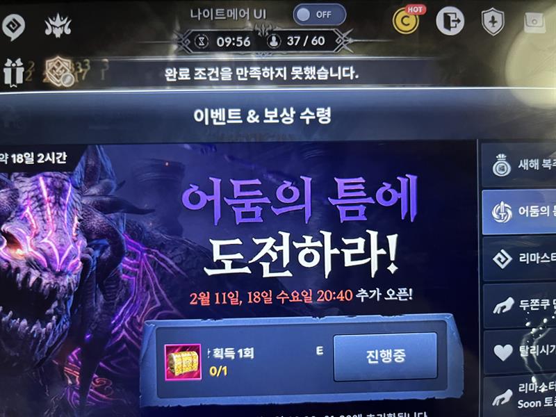 크자카 잡다 팅겨서 들어왔고 보스 아이콘에서 700몇위 라면서 보상 받았는데 여기서 뭘 더 해야 하나요? 팅기고 들어오려면 한세월인데 이벤트 포기해야 합니까.... 너무 인원이 밀집되는 컨텐츠 입니다. PC버전이 나온다지만 저같이 PC가 없는 사람은 시도 못할 컨텐츠 같아요. 흔적으로 잡을 수 있는 시스템이 안나온다면 전 시도도 못 할듯 합니다.