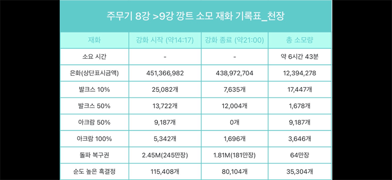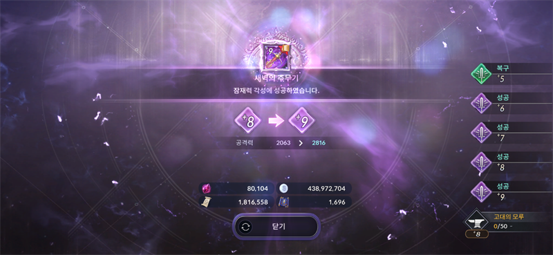 8강 모루 0/50 ~ 50/50 천장 후 9강 성공
