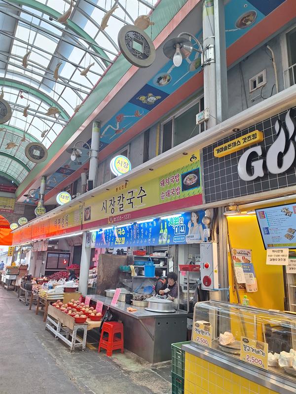 칼국수5천원 수육5천원의 유명한 시장칼국수집도 있고