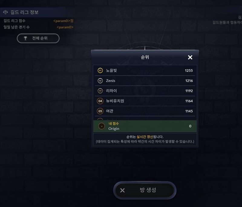길드리그 예선전 점수는 일일 초기화임?