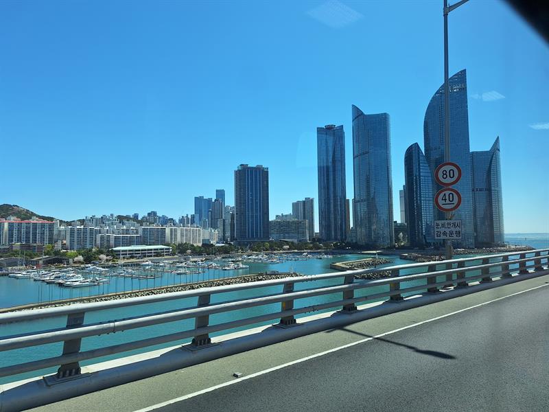 광안대교와 부산대교 2번의 해안대교를 통과하며 바다를 보여주기에