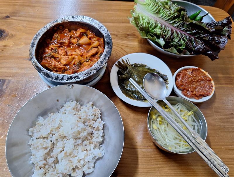 이집은 짜글이 같이 자작자작... 오뎅이 들어간 짭짤이한 돼지김치찌개를 상추에 싸먹는 집이다