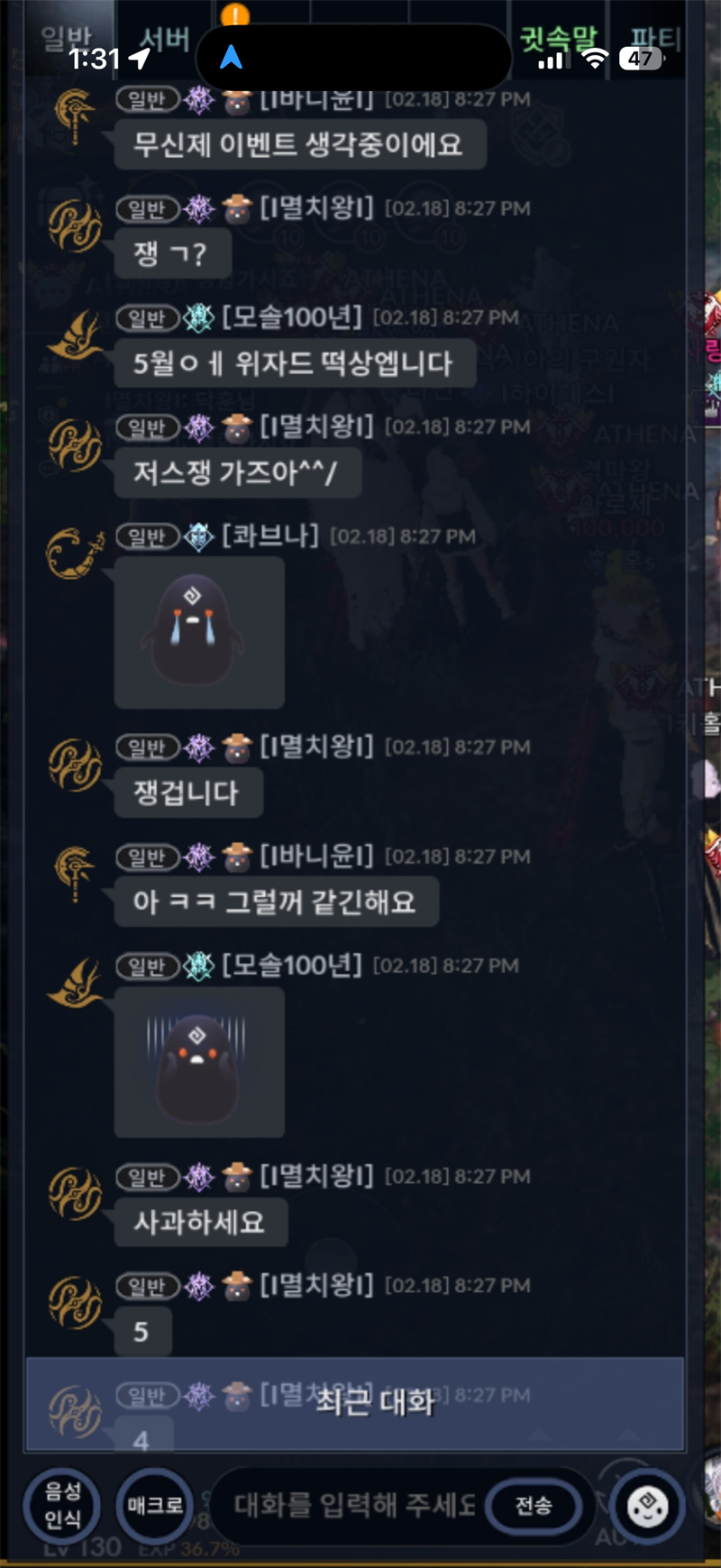 쉴틈없는 로닌챗은 입테나의 빽빽파티